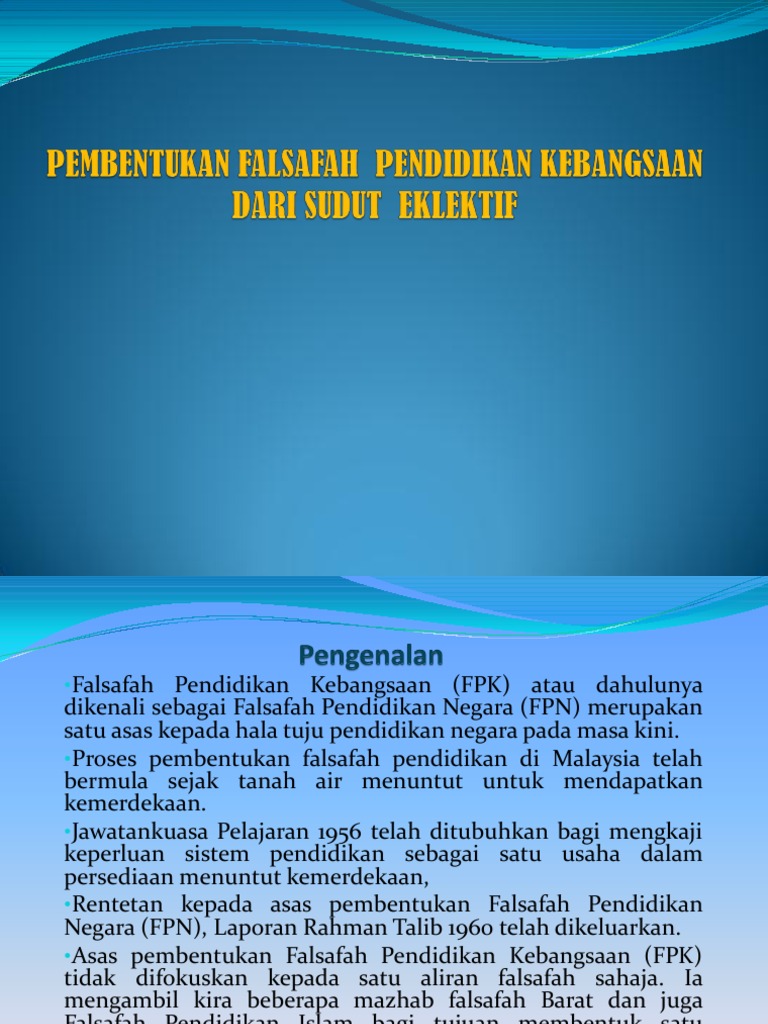 Pembentukan Falsafah Pendidikan Kebangsaan Dari Sudut Eklektif Pdf